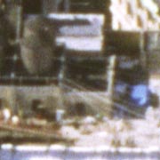 A shot like the one above, while absolutely amazing as a large 20x30 print, loses some of it's impact in a web presentation. I actually took this shot several times, by coincidence once with each of the three films I was using for daylight photography. As a result, it provides an interesting indication of the performance of all of the films. The films I used were all professional emulsions, and were generally regarded as the finest of their various speeds for photographers seeking vibrant colour. They were Fuji Velvia (a 50 ASA slide film with a legendary reputation), Fuji Superia Reala (a 100 ASA negative film with exceptional sharpness and colour) and Kodak Portra 400UC (a new 400 speed film from Kodak with excellent grain and vibrant colour). This trip was the first time I had extensively used the Portra 400UC, and I was interested in seeing how it would compare to the slower films. I normally shoot only Reala when shooting negatives, but I considered that I would need flexibility to use a faster film on occasion, hence the selection of the Portra 400UC. In order to demonstrate the differences between the resolution characteristics of the films I have taken 100% crops at 5400 dpi of the image above from each of the films, without utilisation of any grain management technology. The image is a crop from the roof of the large white building from the centre of the shot. |