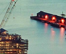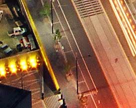This photo was taken as a 15 second exposure , with a Cokin P123 graduated blue filter. The detail in the original scan is amazing. Melbourne, looking West over the Docklands, May 2003. |