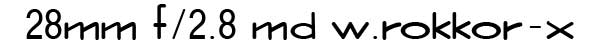 With a 75 degree angle of view, the 28mm lens is an extraordinarily popular focal length, perfect for scenic landscapes and still wide enough to achieve striking perspective when used effectively. The 28mm f/2.8 version is probably the most readily available wide angle lens for the Minolta system. Sold in the tens of thousands, the 28mm f/2.8 provided sound optical performance at a reasonable price. Minolta made a slower f/3.5 version of this lens which has a poor reputation, as well as a highly sought after f/2 version which included a floating element design for increased performance. All three lenses were available with a 55mm filter thread