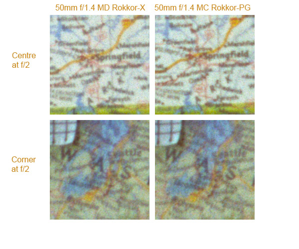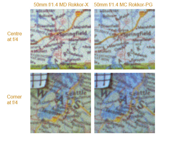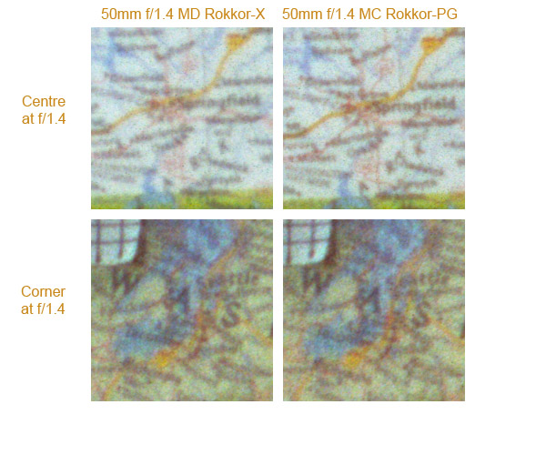 50mm f/1.4 MC Rokkor-PG shows results possibly not quite as good as those