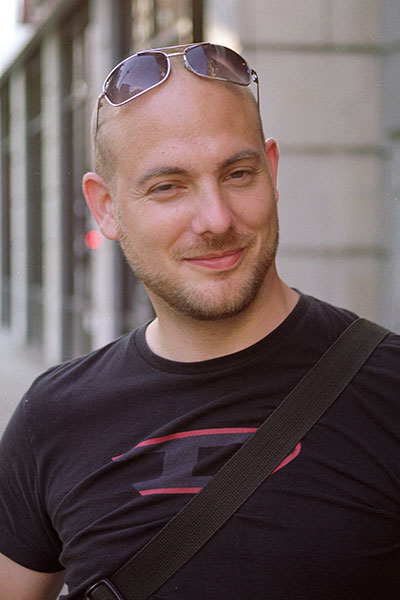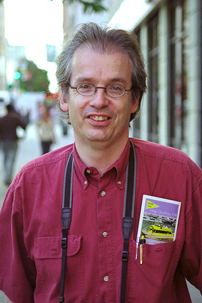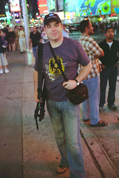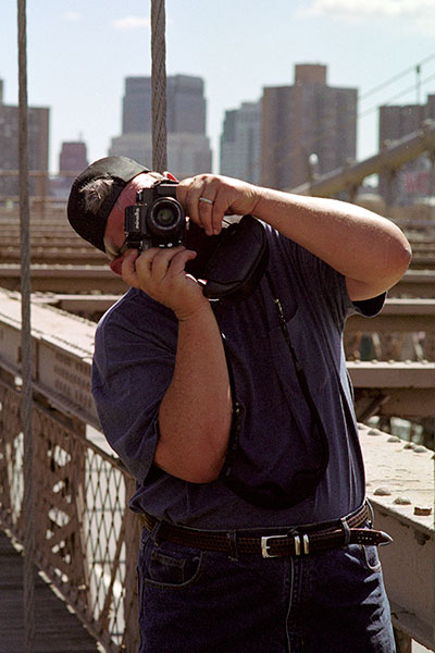 John demonstrating the "No, don't turn the camera, turn your whole head" method of taking pictures in portrait orientation. |