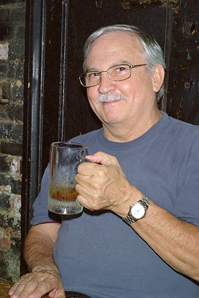 Bob joined us for the walk and kept smiling like this until he had a sip and realised his drink was soda not beer. |