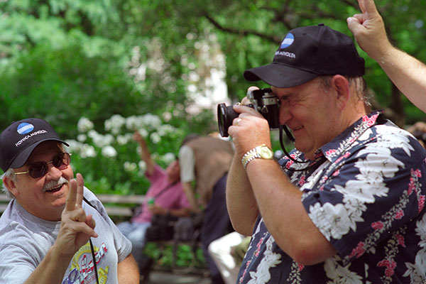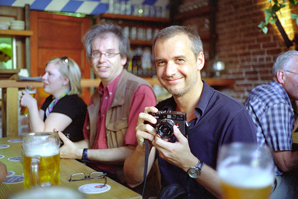 Stefano proudly showing off his rare Minolta CLE while a jealous JB looks on in the background trying to work out how he can get his hands on it. |