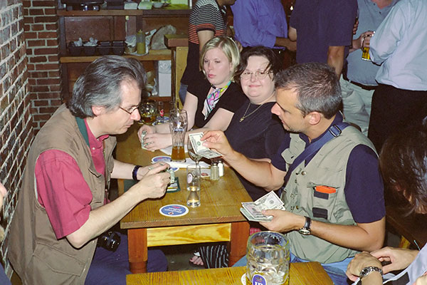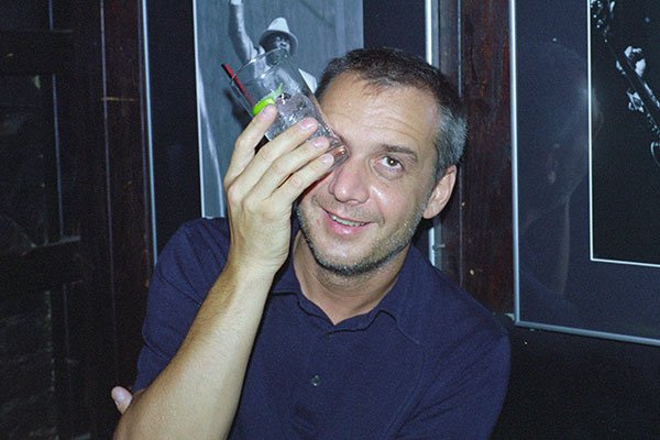 Stefano nurses his eye at our next destination (Bar 55) after being mugged for his CLE by a suspiciously JB shaped bandit. |