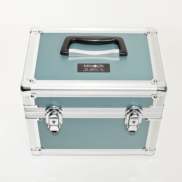 The Minolta 800mm f/8 RF was a very expensive lens when available new, and due to rarity, collector demand, and the ease of conversion to the popular canon EOS lens mount I would expect that it will continue to attract a premium. A price in excess of $1000 for a good condition later model (white body) lens would be expected. The lens comes with a sturdy case, as befits a super-telephoto of this price. |